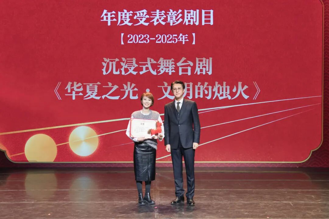 大会表彰了刘敏涛等14位同志以及话剧《温暖的味道》、沉浸式舞台剧《华夏之光·文明的烛火》两个剧组。